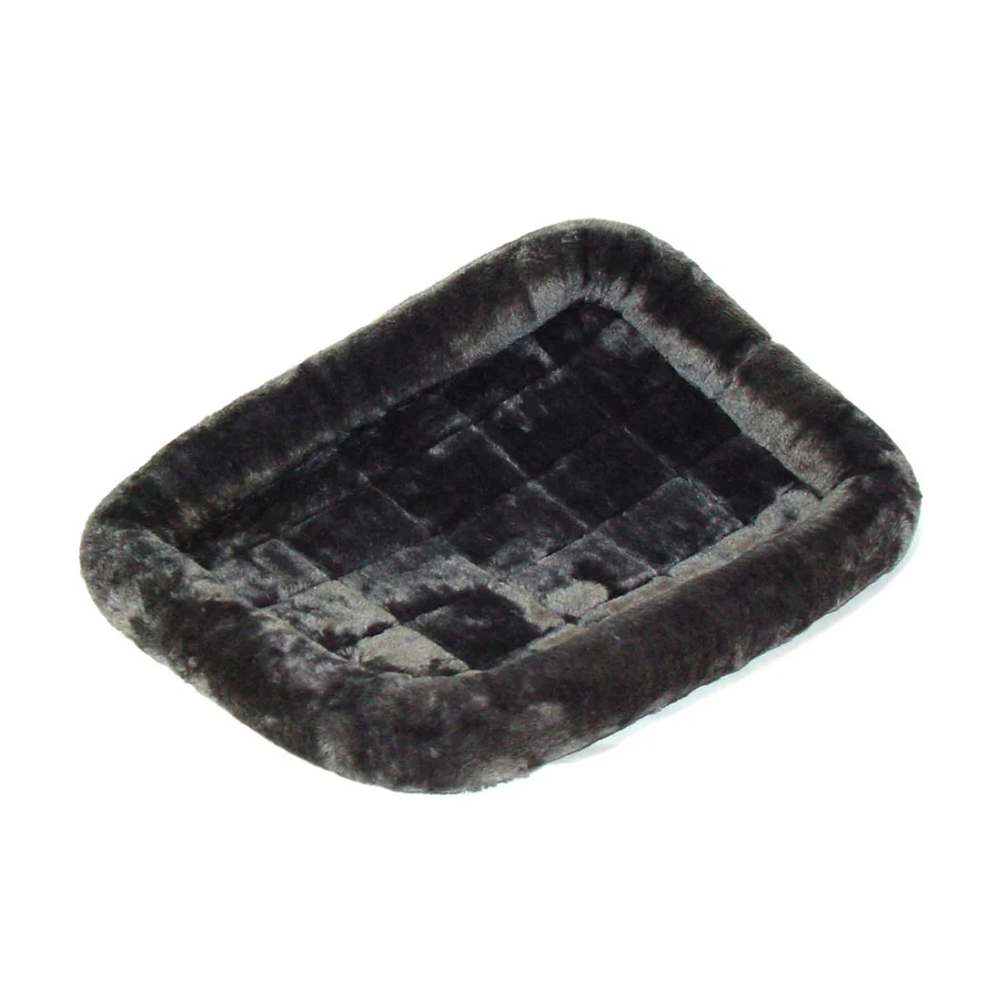 • Cozy, polyester synthetic fur bed with overstuffed bolsters. Perfect for 22″ crates or as a stand alone bed.